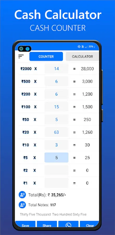 Save time, reduce errors, and streamline your cash handling process with cash calculator - the leading note counting app on the market. Download now and experience the future of effortless currency counting!