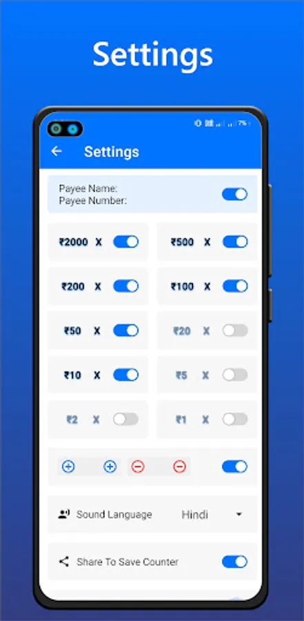 6. Customizable Counting Settings: Tailor the app to your specific needs with customizable counting settings. Adjust the sensitivity, exclude specific denominations and GST Calculator, or enable batch counting for bulk transactions. Cash calculator adapts to your preferences for a personalized experience.