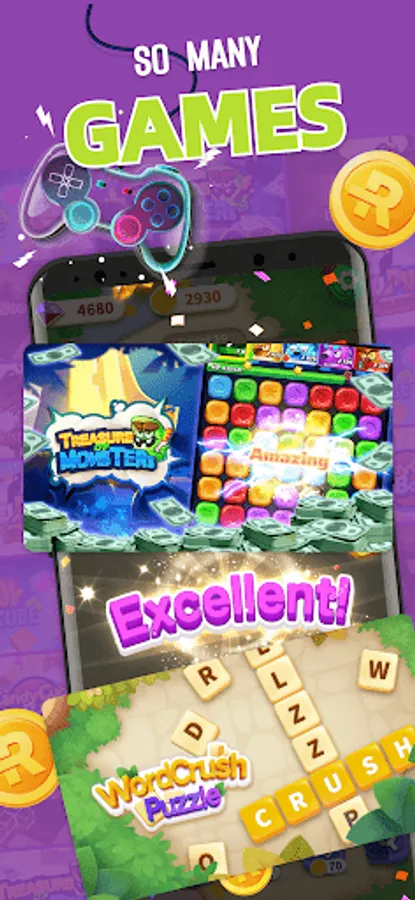 2️⃣ Discover funny games to play and get coins in your time