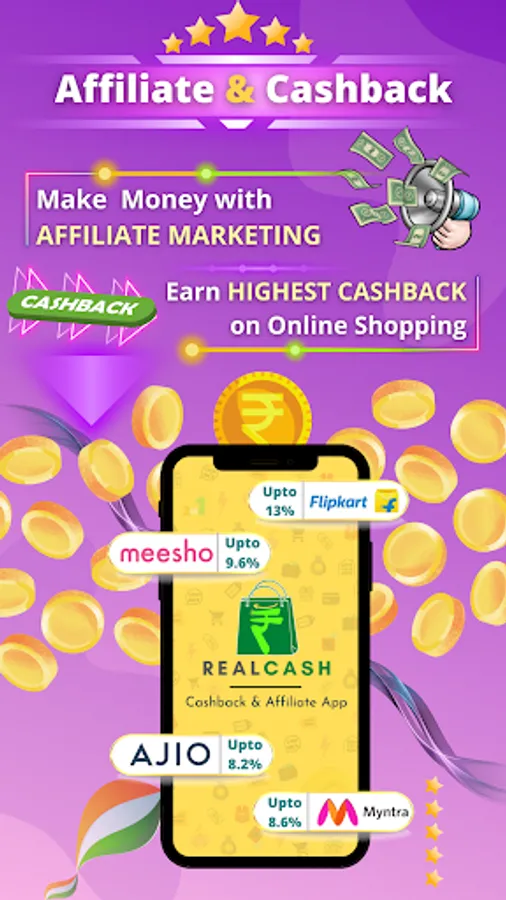 Welcome to RealCash, India's fastest-growing cashback, coupons and affiliate marketing app! Now Shop online from your favourite shopping site with extra savings through cashback, rewards, and coupons. On RealCash, there are endless possibilities for content creators as well they can monetize their content with best payout in the industry. With RealCash, you can shop online, earn cashback, and make money online effortlessly through affiliate marketing.