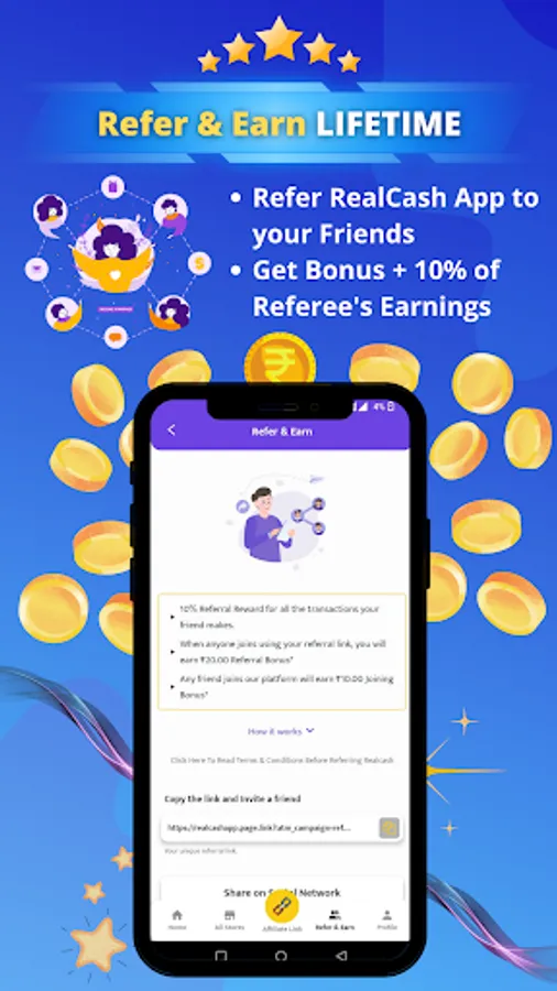 * Share and Earn: Share your favorite store or affiliate links with friends, family, and your network to earn cashback on their purchases.