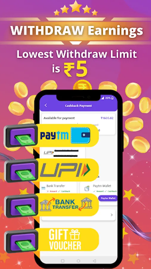 * Refer and Earn: You can earn unlimited through break-through Referral Program. For every successful referral you’ll get 10% of their earnings for lifetime + ₹5 Cash Bonus