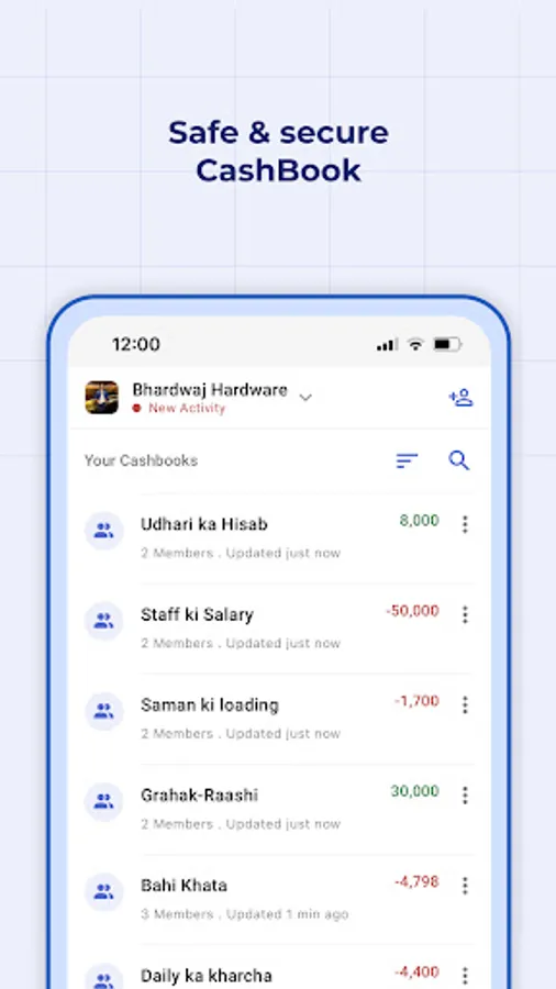 Seamlessly manage your daily hisab kitab, ledgers, income, sales, expenses, credit and debit entries, as well as day-to-day business finances with ease.