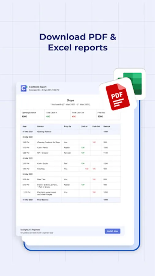 Now use CashBook App on Desktop or PC : https://web.cashbookapp.in/login