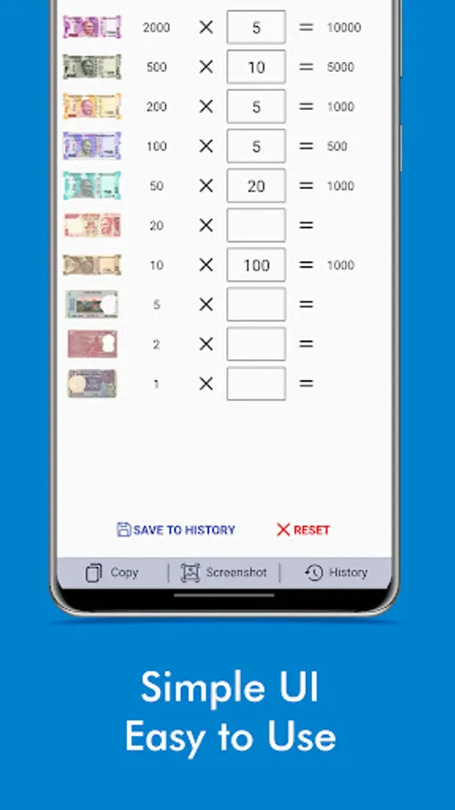 Cash calculator contains all currently available currency notes in India. Best money calculator app.