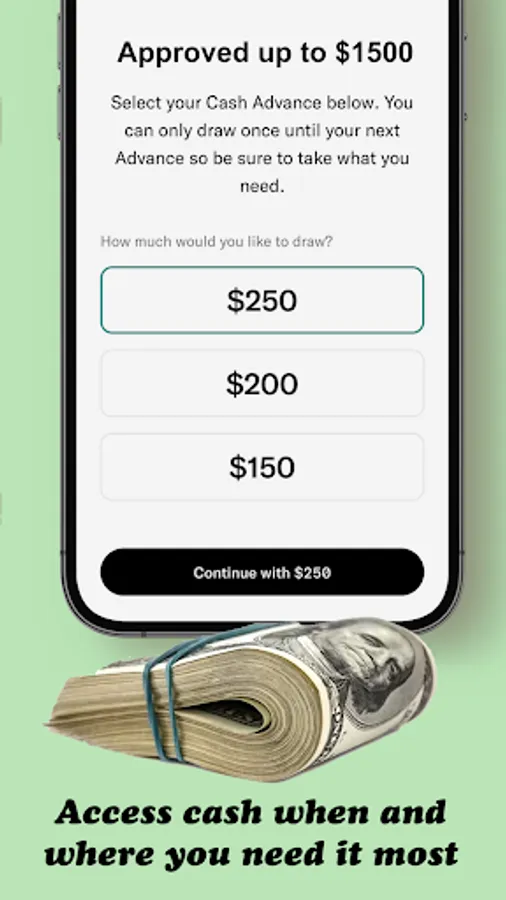 1. Download the App: Install Cash Dash from Google Play Store and select how much you want to borrow from $100 to over $5000