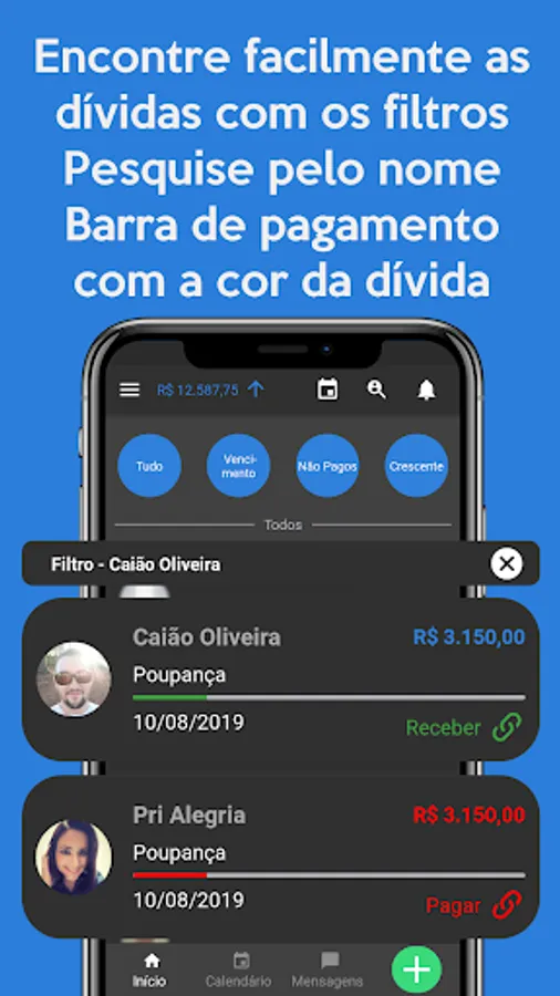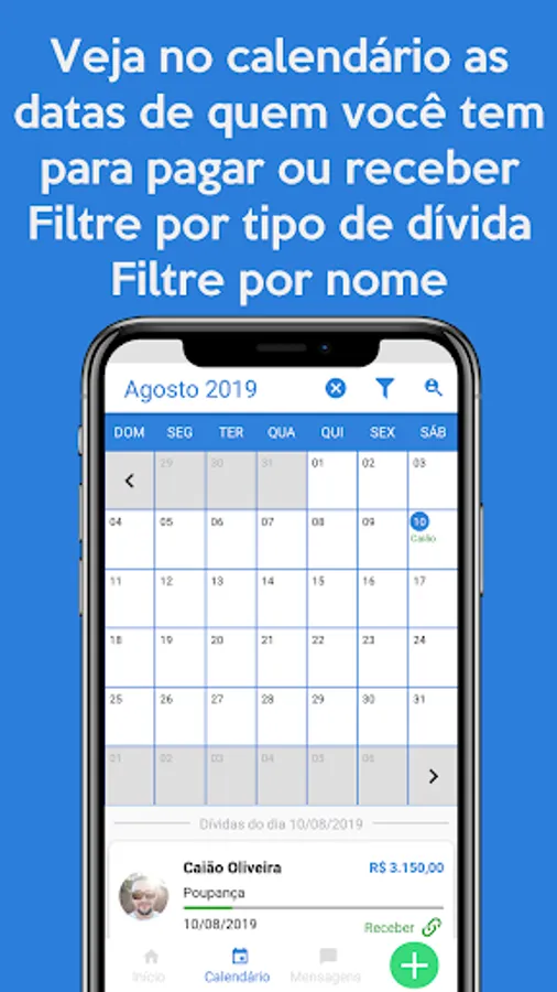 04- Filter your debts by person, date, payable, receivable, paid and unpaid