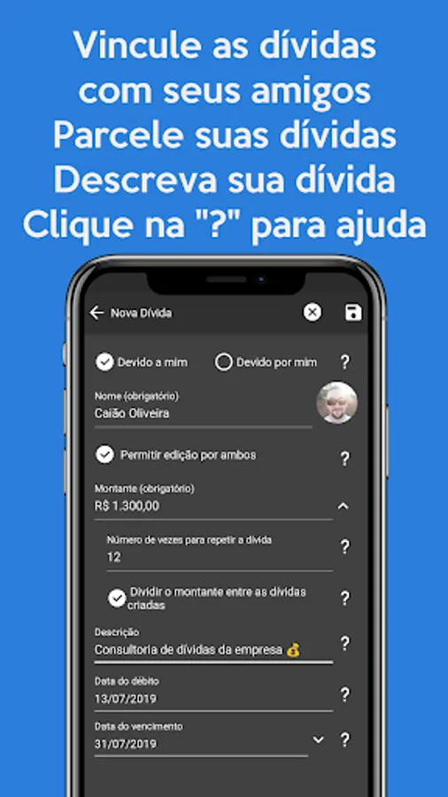 02- Share the debts with your friends, when one update the debt, automatically changes to the other