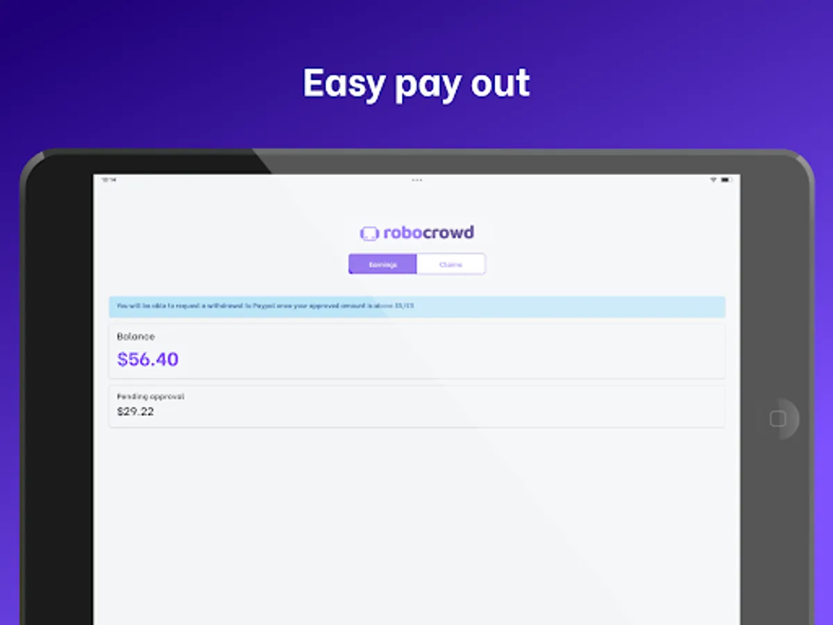 Download Robocrowd today and start earning as soon as your account validated (Usually takes 24-48 hours)