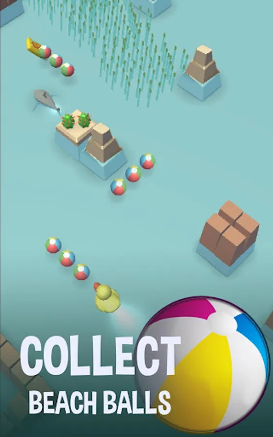 ⚡Try to pick up powerups that help you swim further, but beware of the correct timing of your tap, because these precious powerups are many times hidden behind an obstacle. There are three different powerups: 🧲Magnet powerup which helps you collect beach balls more efficiently, 🧼soap that makes you invincible for a short amount of time after you have picked it up and lastly, 🍀lucky clower powerup that transforms near obstacles into beach balls upon pickup.