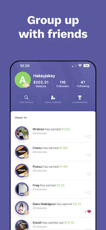 2. Boost your earnings even more with daily questions and missions, team up with your friends to cash out even faster, and compete against other users for cash prizes!