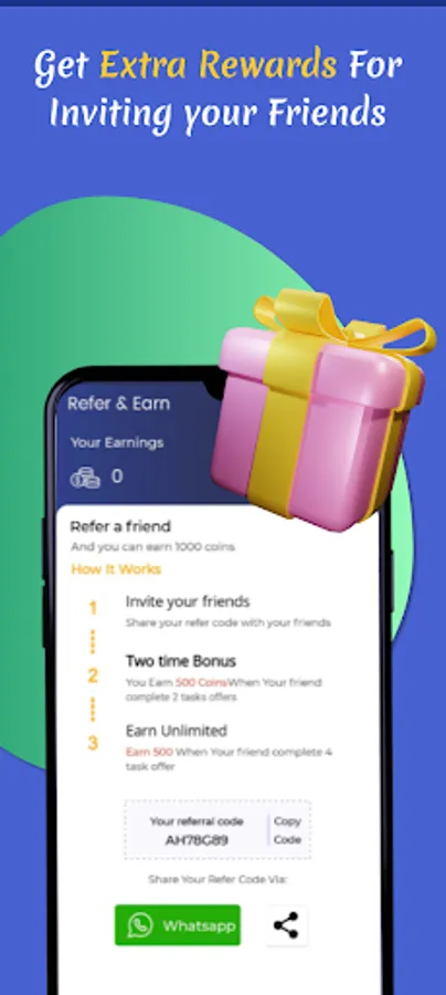 Do tasks like install app, register on specific app you can earn a lot of coins when you complete tasks on your smartphone.You get free income daily free