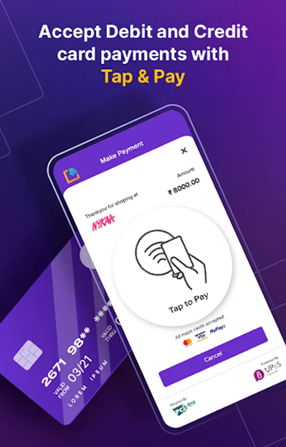 - With NFC enabled, give an option to the customers to Tap & Pay via any debit or credit card