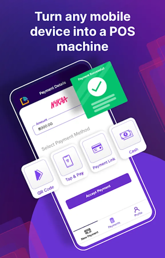 - No physical device is needed. Download app on any Android phone 6.0 and above and start accepting payments