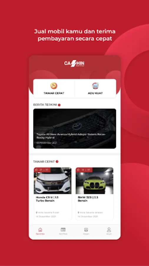 Cashin is a digital platform or startup engaged in car sales. Cash-In is very likely to take on a role as a pioneer in the B2B (Business to Business) section with added financing / Multifinance assistance which is the advantage of this platform compared to others. Not only prioritizing the end-ser or customer, but building a supply chain between the showroom and sales which is the upstream in the current car buying and selling business.