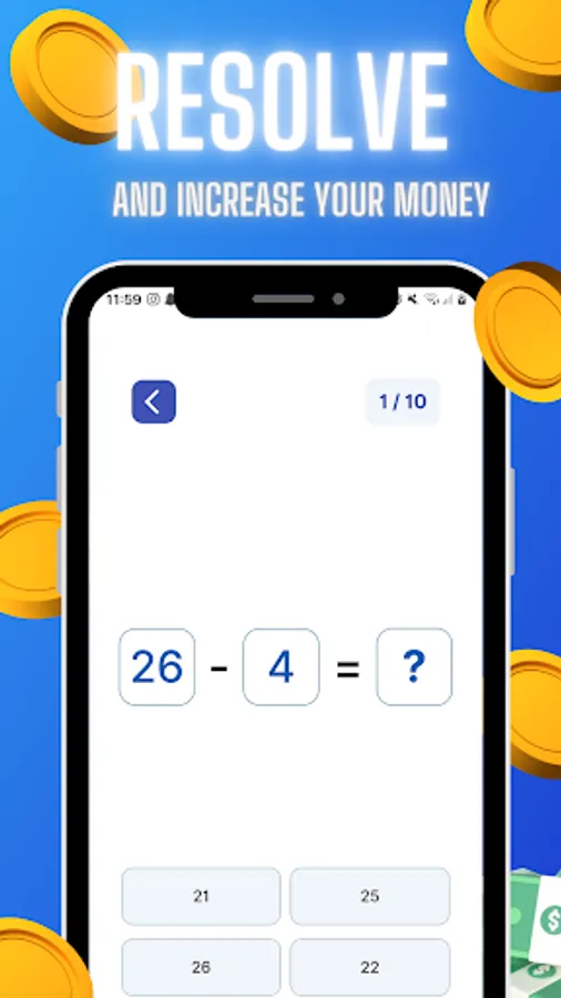 Keywords: Earn money, Addition and subtraction, Math skills, Fun, Easy, Coins, Daily quests, Earn money by watching videos, Earn real money.
