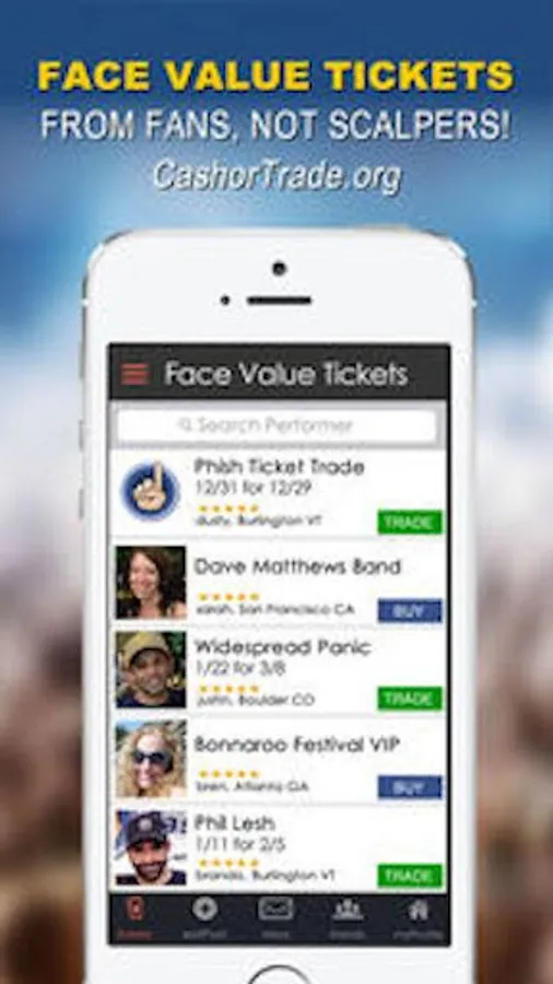 CashorTrade.org is the only FACE VALUE ticket community on the planet. It is a social network where real fans come together to end scalping & buy, sell and trade concert, festival and sports tickets for face value.