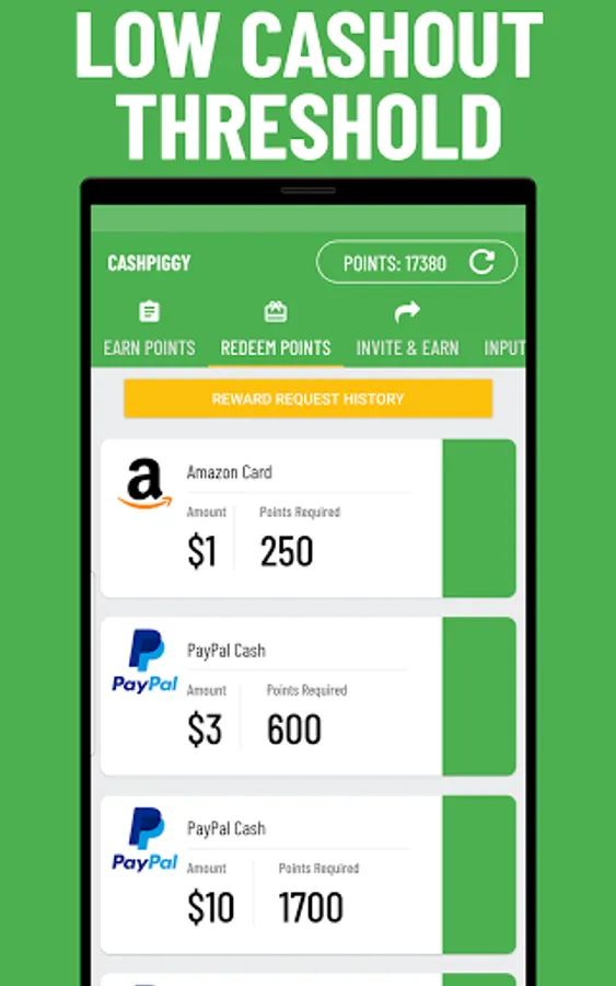 Please do note CashPiggy is not endorsed by or have any association with PayPal or Amazon.