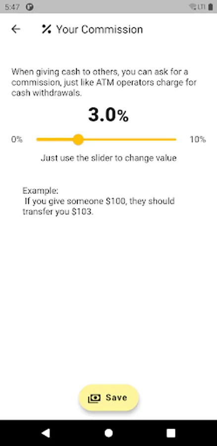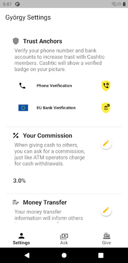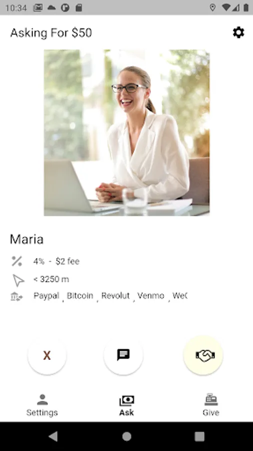 6. Get cash from user, and transfer the agreed amount via money transfer to the other user (commission may apply based on the other user's settings 0-10%!) via a money transfer app that you both use.