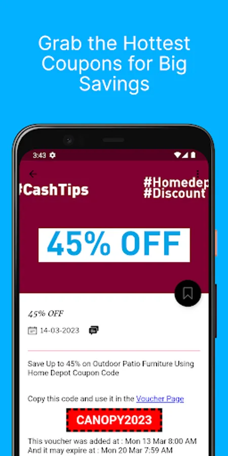 This Home Depot coupon app. It’s very simple to check it out daily, you will never miss it, because we constantly update all deals.