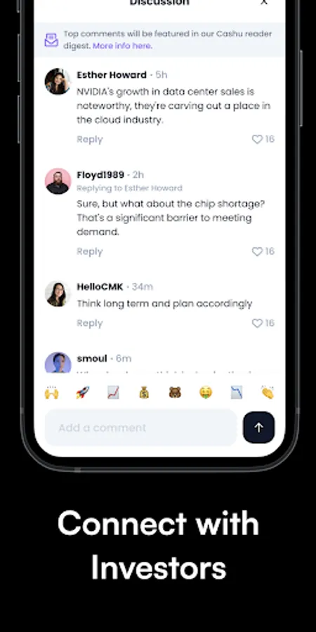 We’re also building an investor community. Connect with other investors, exchange insights, find gems, and get rich.