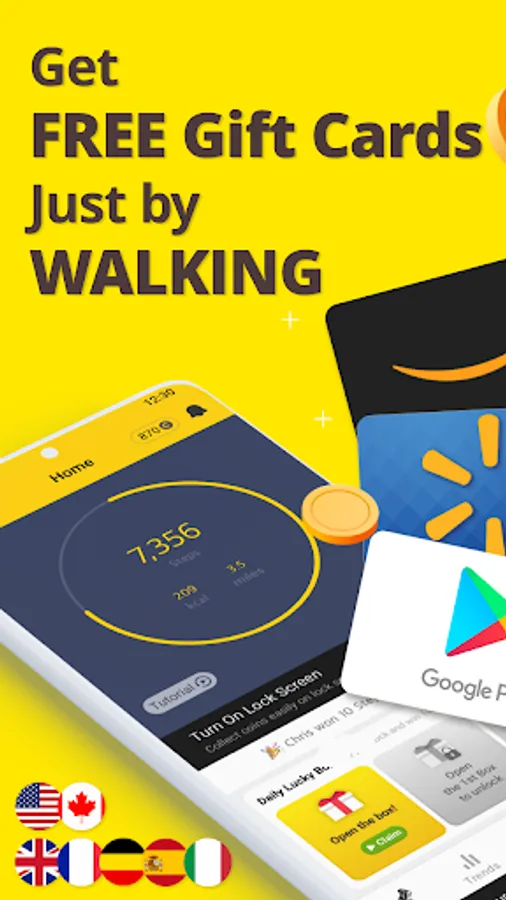 · It is a free walking app that converts your steps into “coin” for amazing gift cards and experiences! With this step counter every day, the more you walk, the more rewards you earn. It will be motivated for forming a healthy lifestyle.