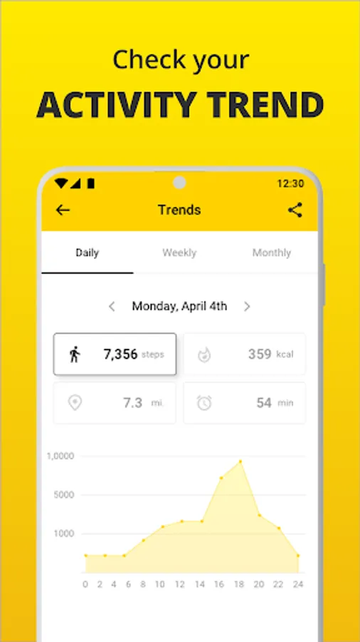 · It shows calories burned, and the total distance that you’ve walked daily, weekly, and monthly!