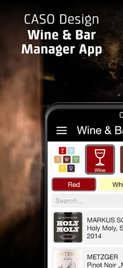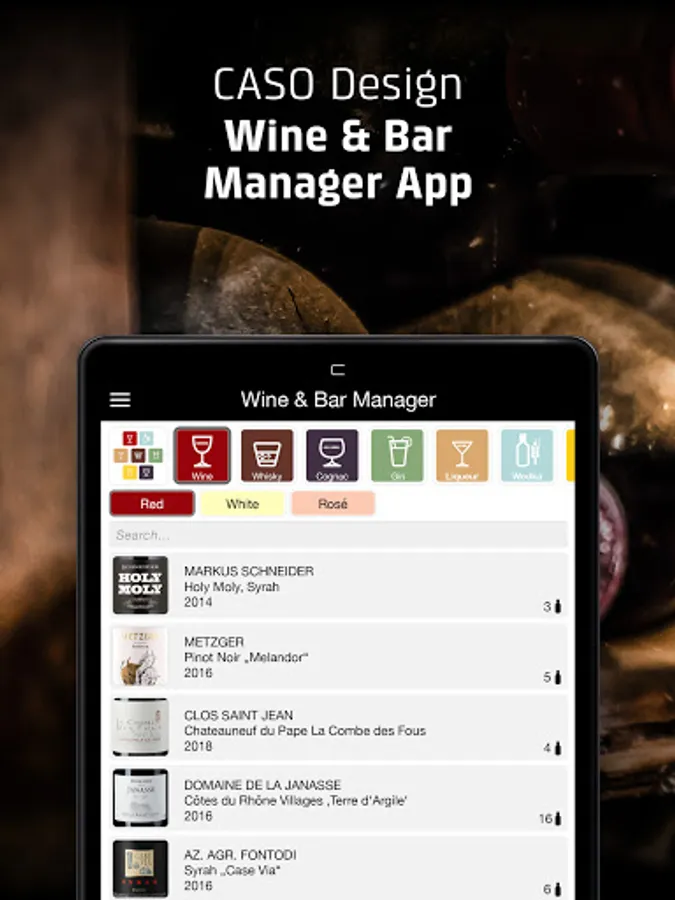 With the new CASO® Design Wine & Bar Manager App, you get the perfect overview of your stored wines and spirits / beverages (gin, vodka, whisky, cognac, liqueur, beer). With this handy app, it is possible to organise your wine and beverage portfolio brilliantly and also add informative notes.