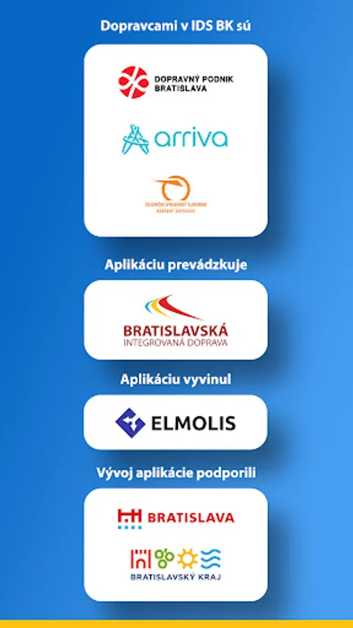 The operator of the IDS BK mobile application is Bratislava integrated transport, a. s., IDS BK coordinator.