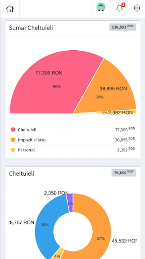 Real-time reports, customizable according to customer needs, eg: profit, income, expenses, receivable, funds available, house, bank, VAT recoverable, merchandise stocks