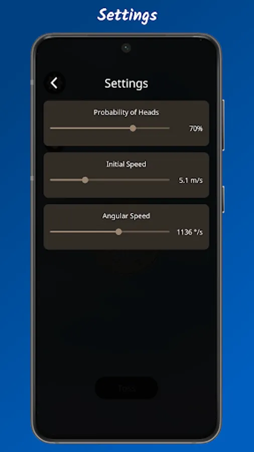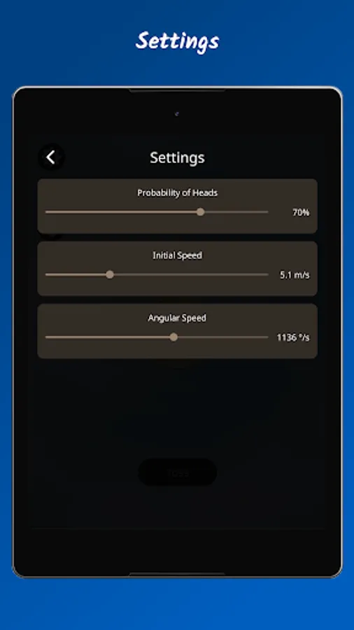 You can also change the coin’s initial speed so it goes more or less high in the air when flipped. The coin's angular velocity can be modified too.