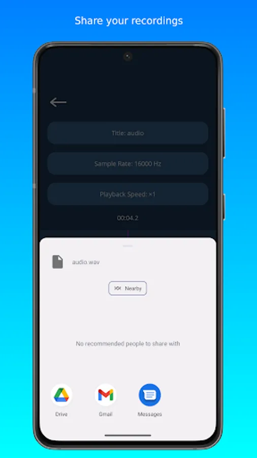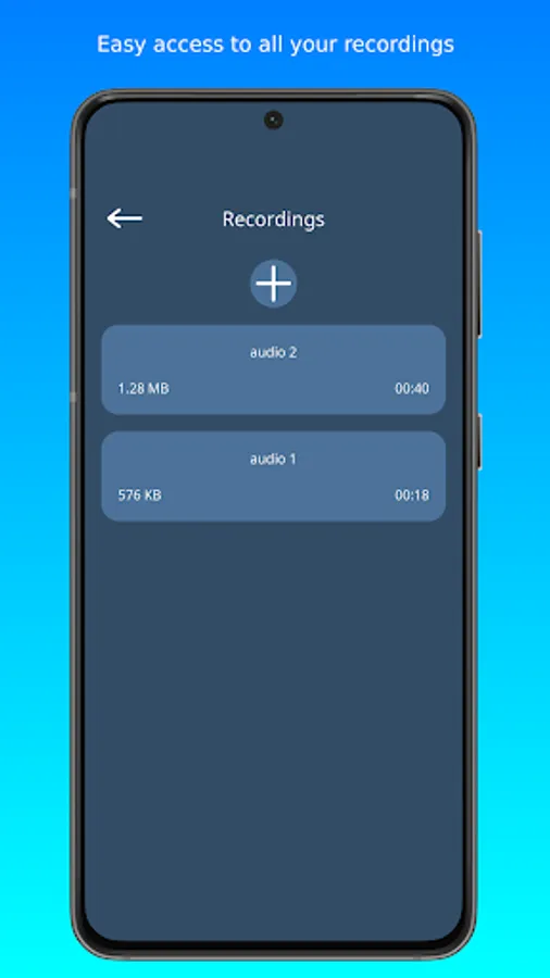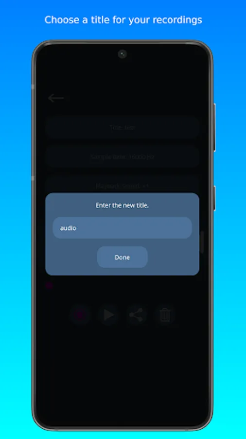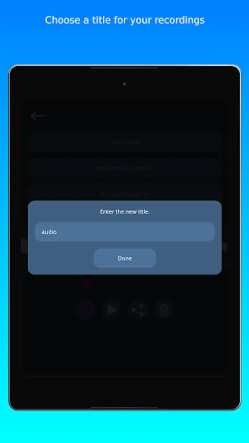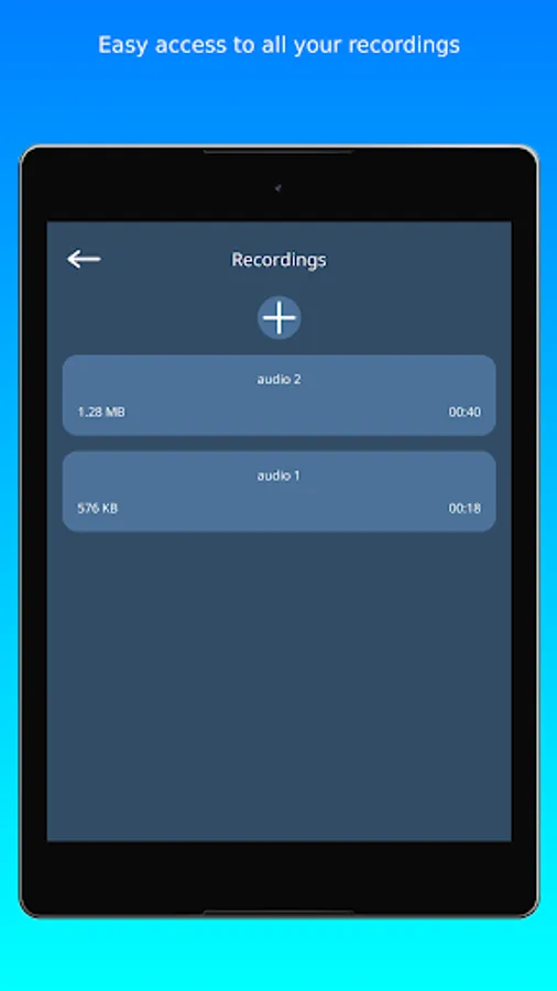 All recordings you make are available at any time from the app. You can open them, continue to record, play the audio, share them with your friends, or delete them to free up storage space. You can also choose a title for your recordings to better identify them later.