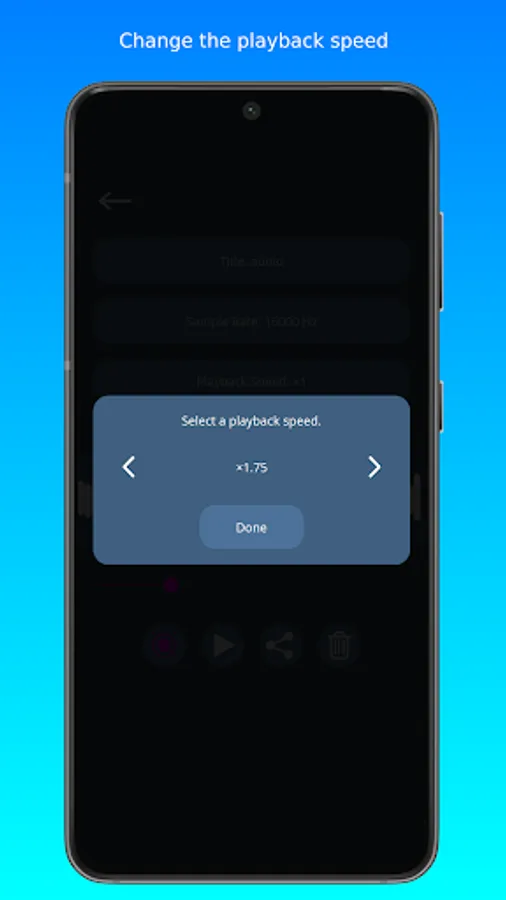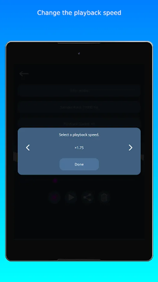 You can also play the recording. If you want, you can change the playback speed to either accelerate the audio or slow it down. When playing, a cursor allows you to accurately choose the position in the recording where you want to play. This can be helpful if you plan to make long recordings.