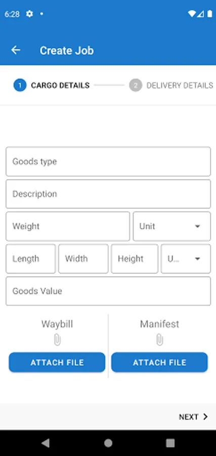 Customer posts a delivery request specifying pick up and drop off location, vehicle size, amount they are willing to pay and desired timelines.