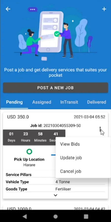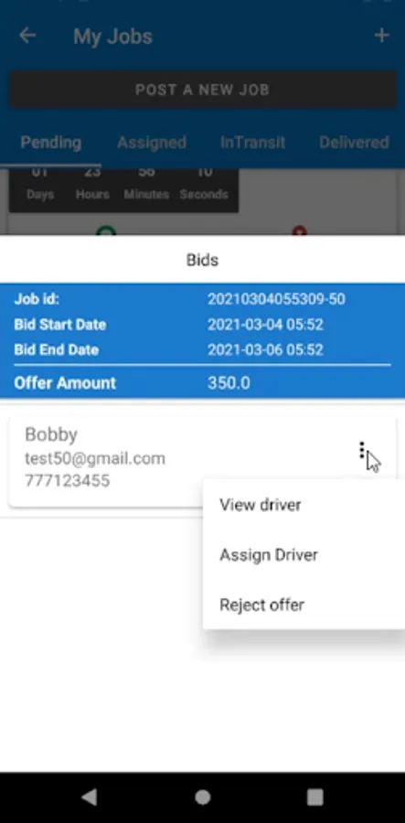 Transporters/Carriers meeting the required vehicle specifications receive the delivery requests and either accept or counter-bid [up or down] the customer’s offer