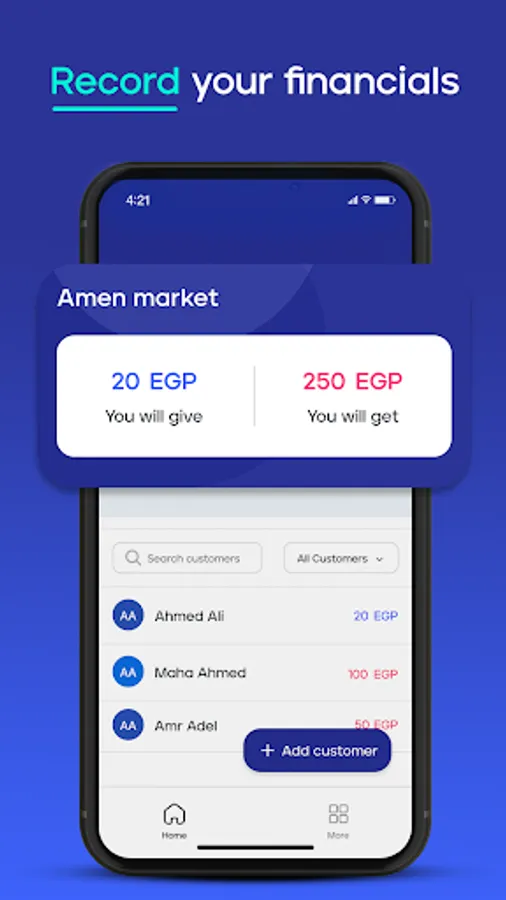 Are you accustomed with using multiple tools to record and track customer credit? That ends here. CashKateb presents you with a simple and organized view of all customer debts. Our merchants do not need to flip through multiple booklets to keep track of their business.