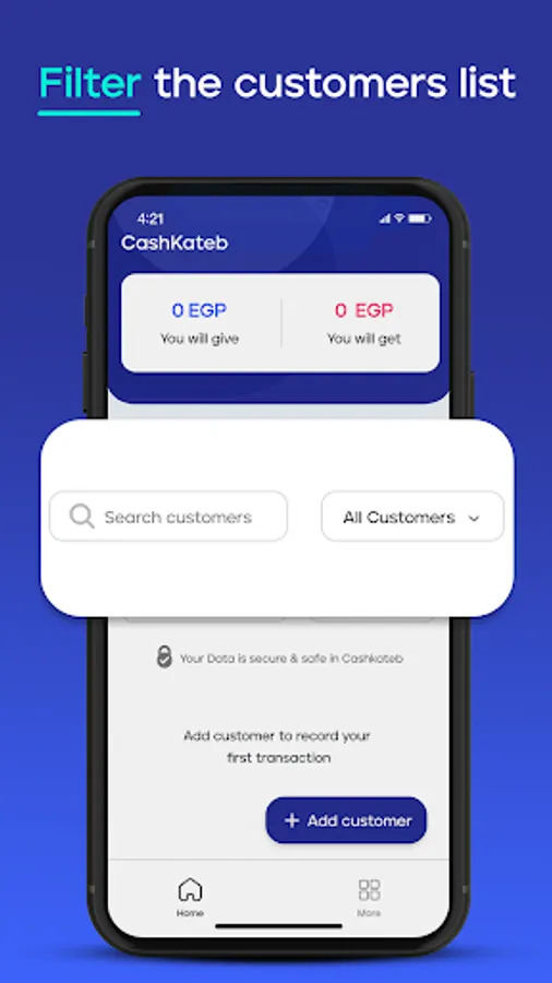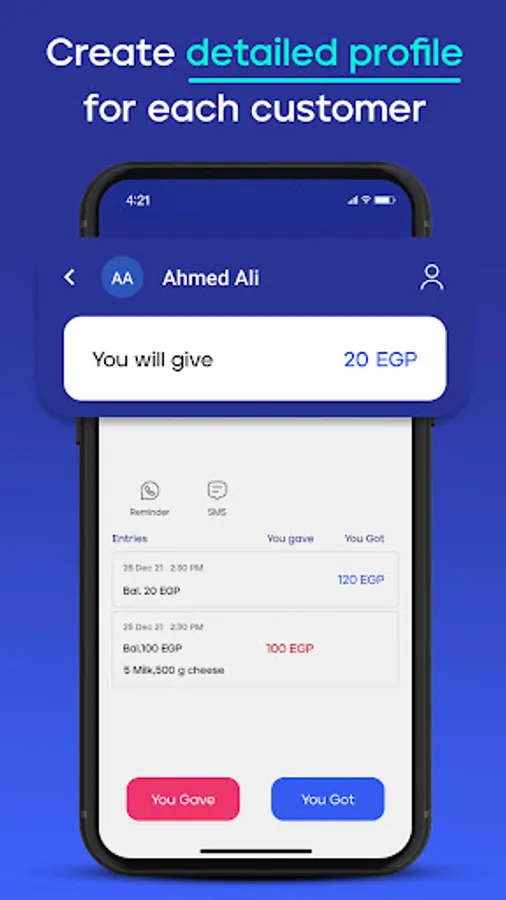 CashKateb is 100% Free, Secure and the best digital ledger book keeping for your small business. Record transactions, track debts and send free reminders to customers for pending dues conveniently. Our merchants do not need to memorize due dates!