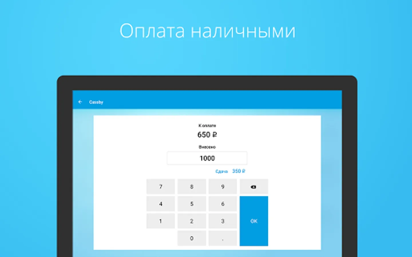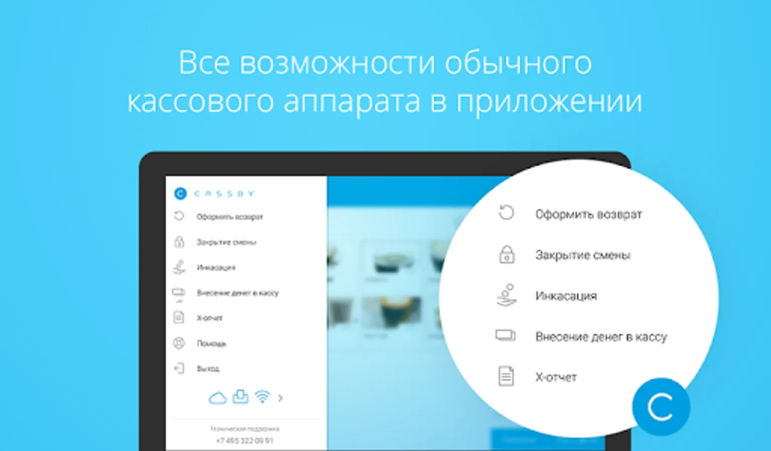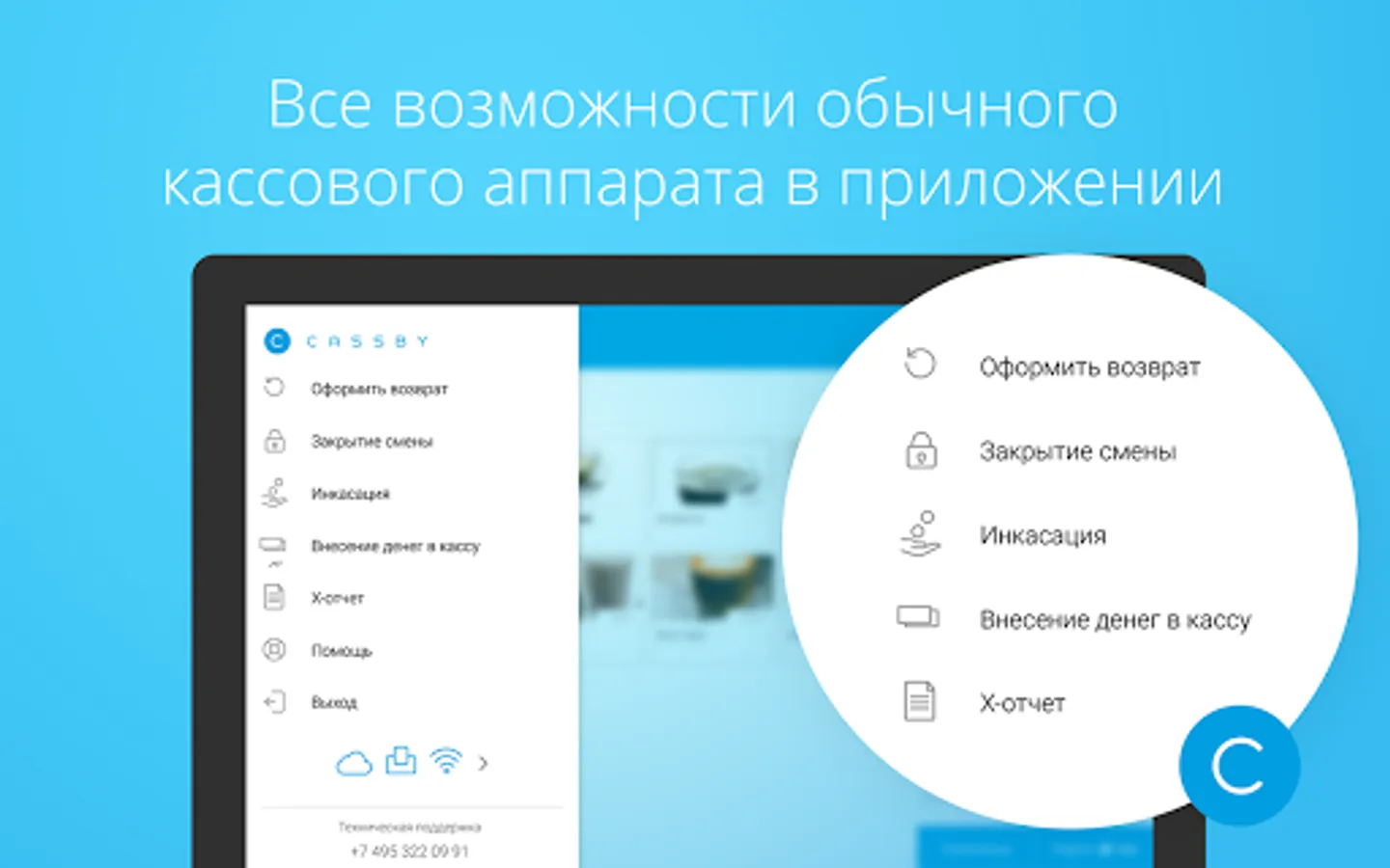 - all the features of conventional cash registers: the return, collection and submission, cash change