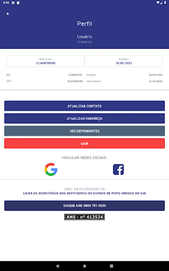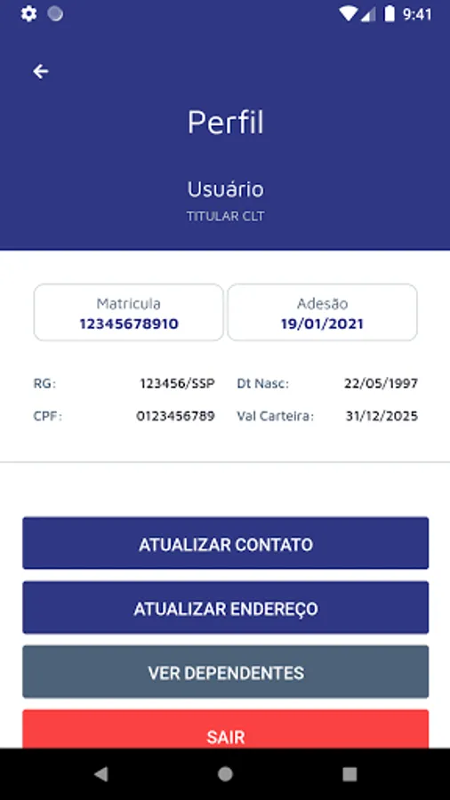 Among the functionalities, you can access the virtual identification card of your plan and your dependents, very useful in situations in which you need to use the plan.