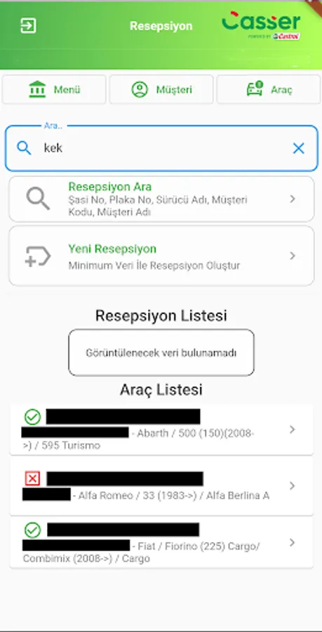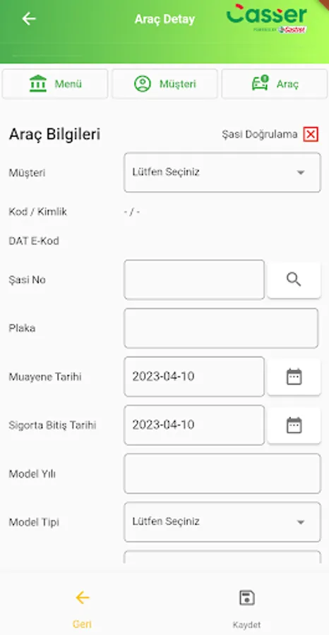 Casser, Castrol servis firmaları için geliştirilmiş projedir. Servise gelen araçların karşılama ekibi tarafından hızlı bir şekilde kayıt işlemlerinin tamamlanması ve operasyon ekibine aktarımını sağlar. Kişisel Kullanım için değildir, Lütfen uygulamayı kişisel kullanım için indirmeyiniz.