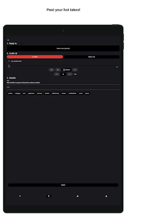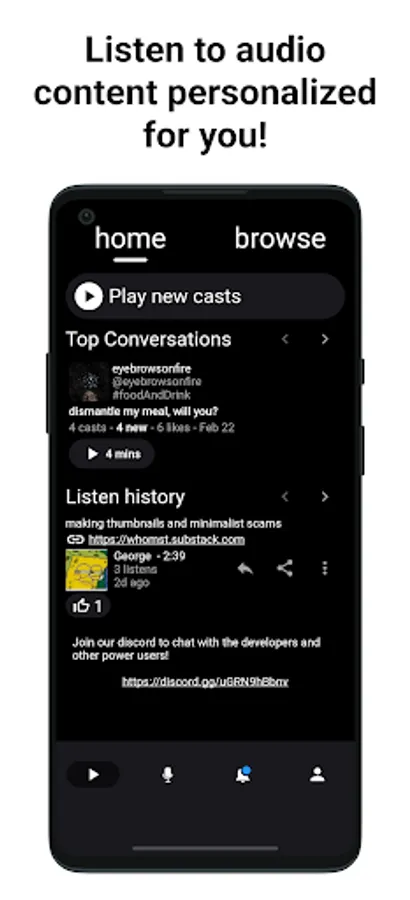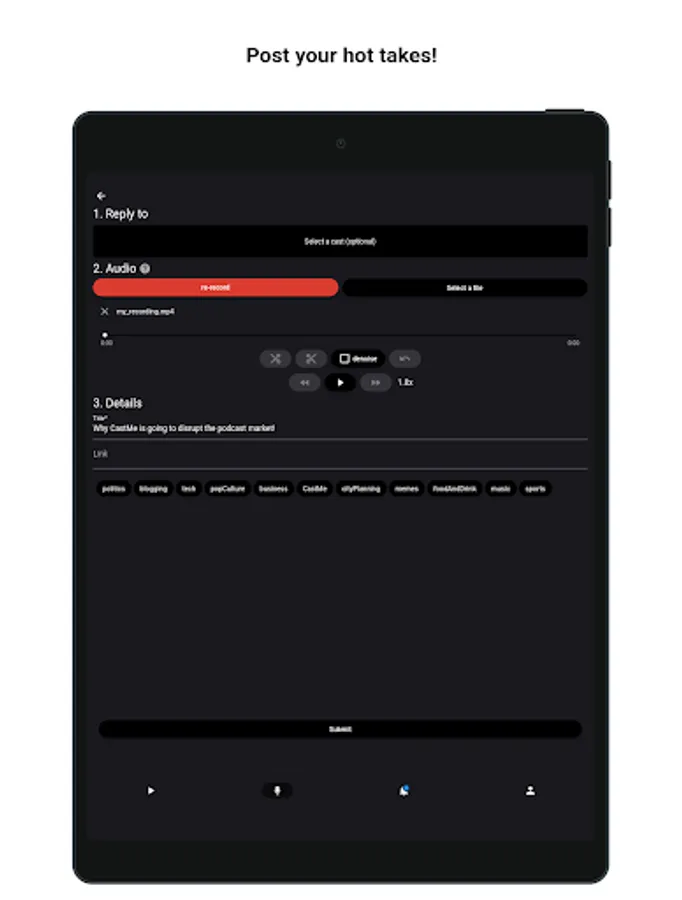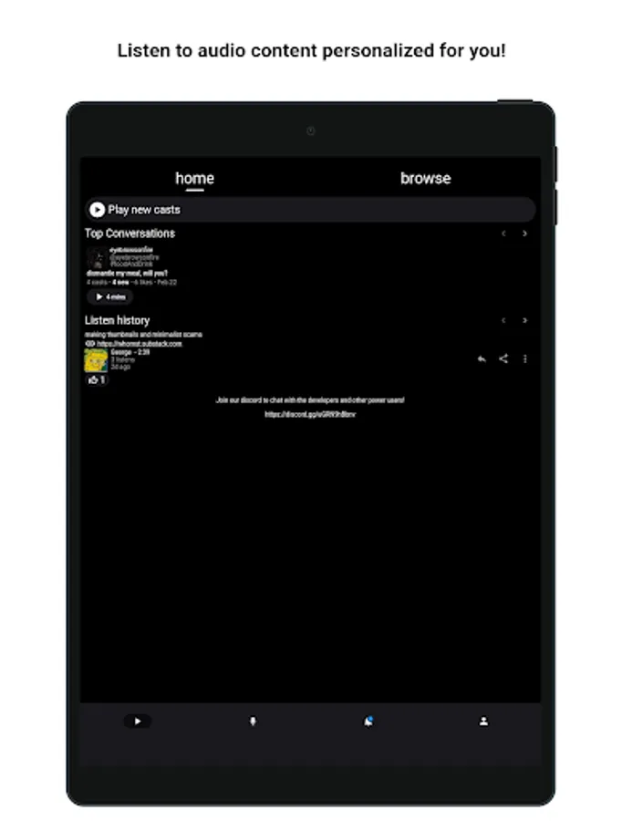 - Ability to post your own casts by recording in-app, sharing a recording from another app, or uploading a file