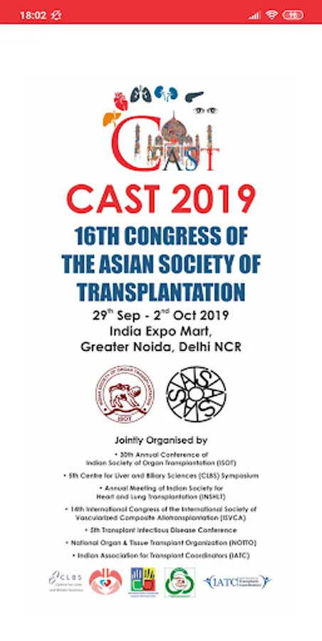 16th Congress of The Asian Society of Transplantation will going to be held from 29th September to 2nd October 2019 at India Exposition Mart Limited (IEML), Greater Noida (Delhi/NCR). CAST 2019 is being jointly organised with