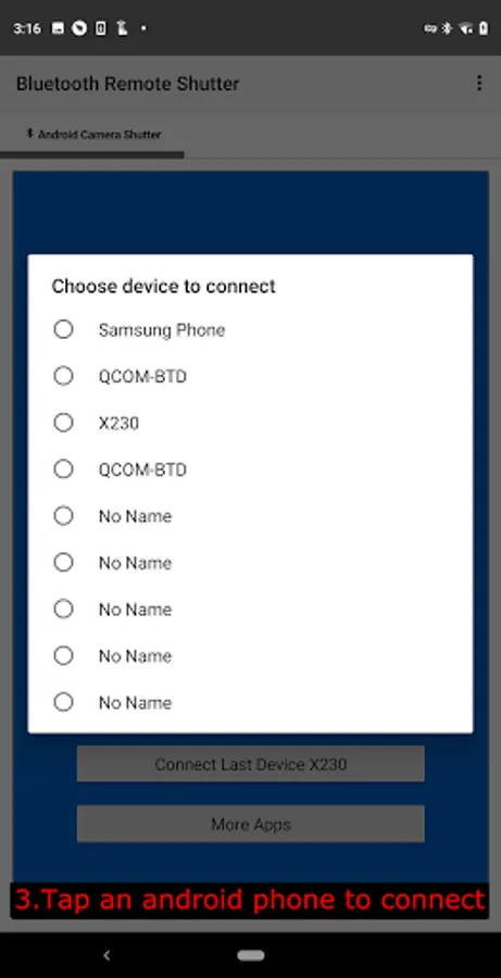 It is an App that you can connect to other phone via Bluetooth, and it activates the shutter button for you.