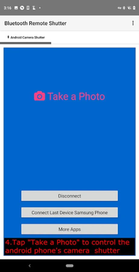 6. Tap "Take a Photo" to control the phone's camera shutter.