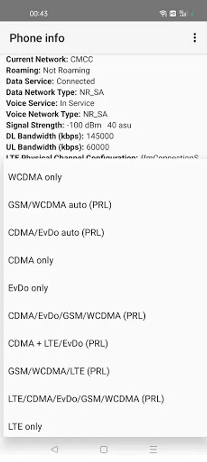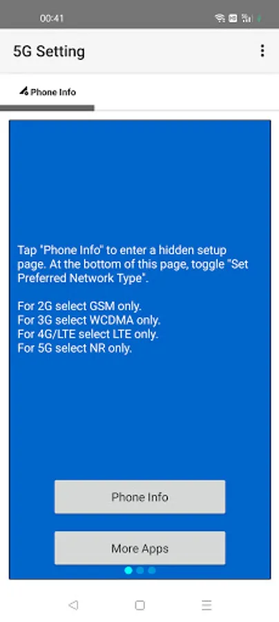 5G Setting App will help to change network to 5G/4G/3G/2G. It can opens a secret menu where advanced network configurations can be selected.