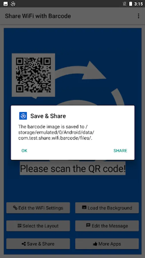 Using this widget, it can convert the link into a picture with a QR code, the user can print the picture or share the picture with a friend, and the friend can scan the picture to open the WiFi hotspot.