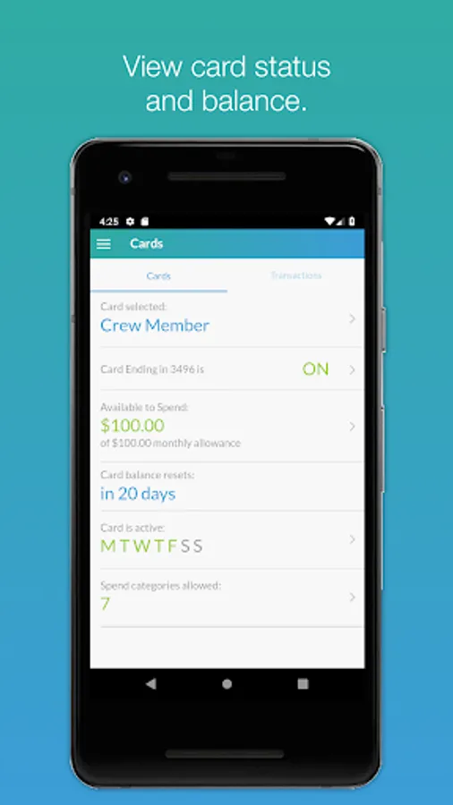The Cast & Crew PCard+ mobile app is the fastest and easiest way to keep track of your production studio expenses. Studios can easily set card controls to limit crew member spending by day, merchant category and dollar amount. With the app, crew members no longer need to call in to see how much they can spend on their card or whether their card is switched on or off.
