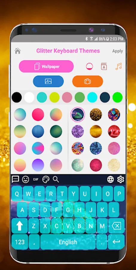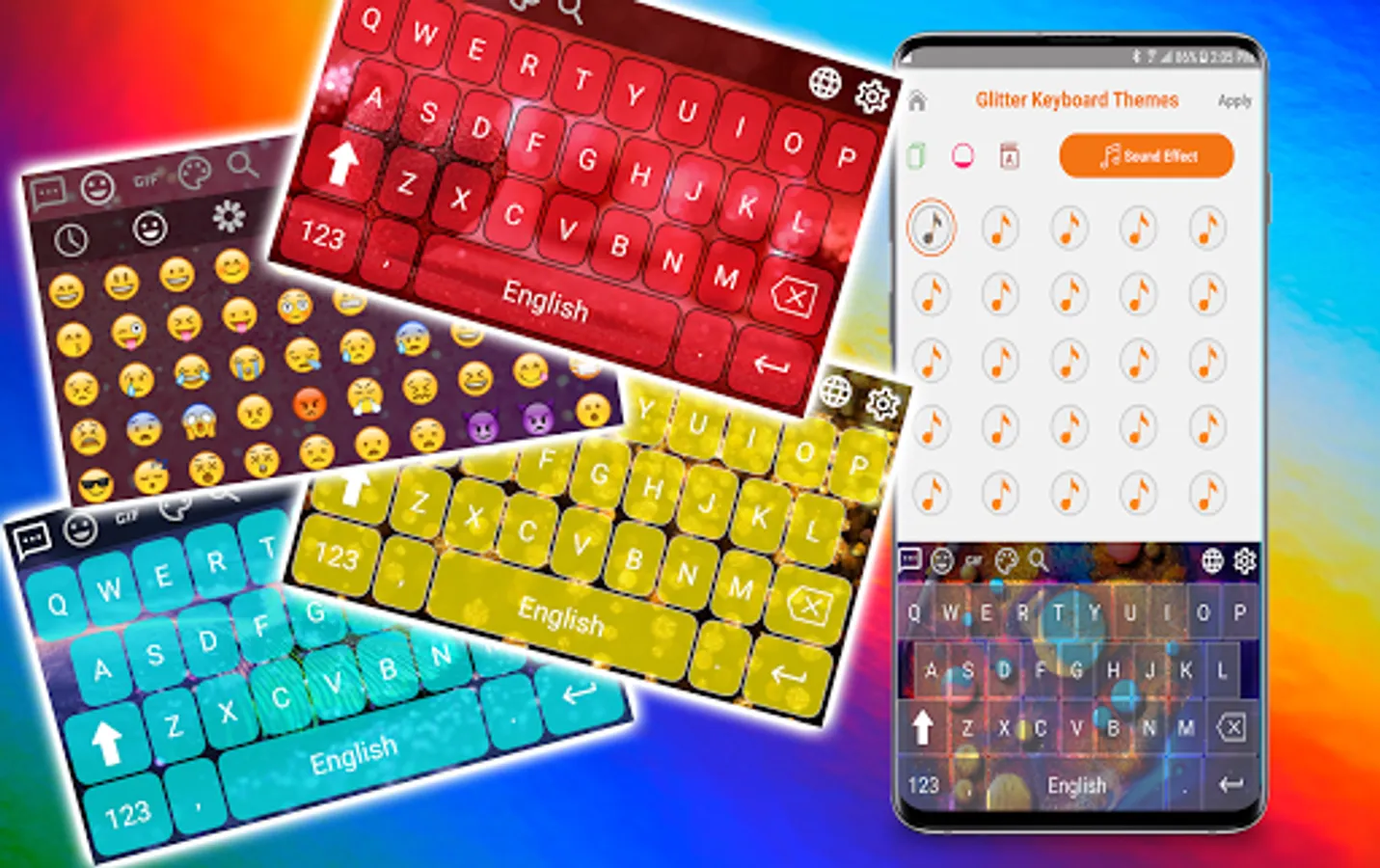This ‘Glitter keyboard themes’ has been tested on devices such as Samsung Galaxy S10 S6/S7/S8/S9, Samsung Galaxy Tab3, Samsung Galaxy Note 8, Nexus 5/7,HTC One and Sony Xperia Z.