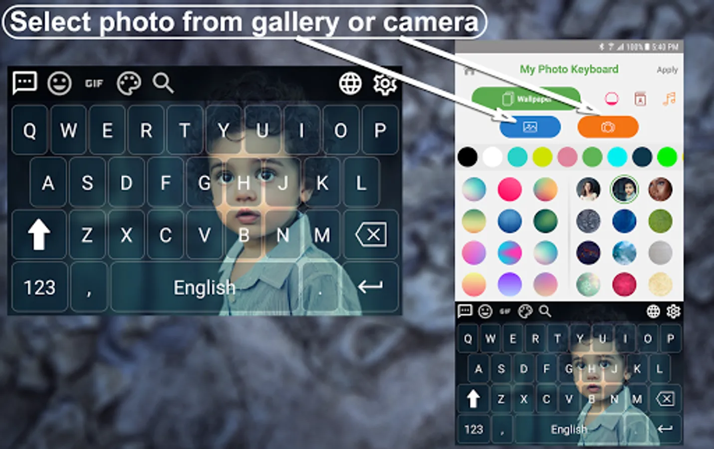 π π Select photo from gallery or camera for keyboard.