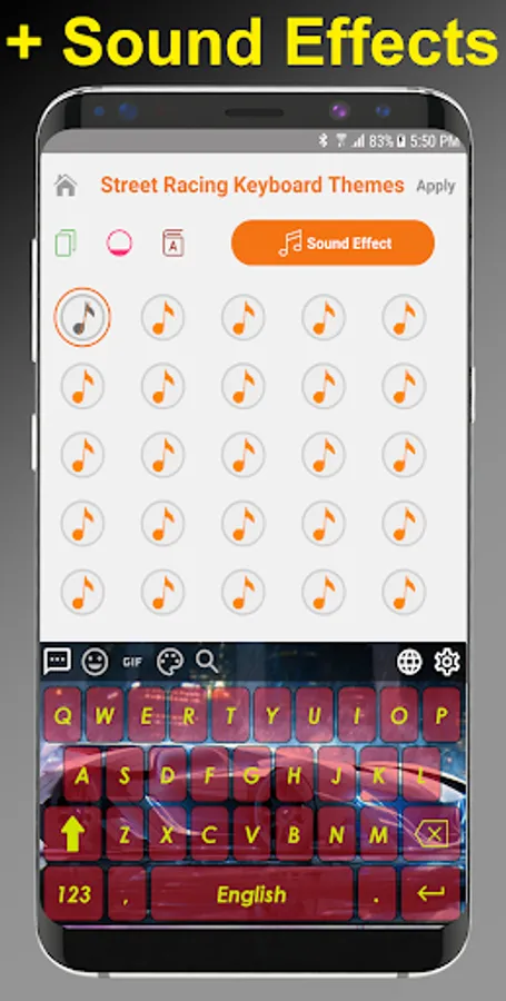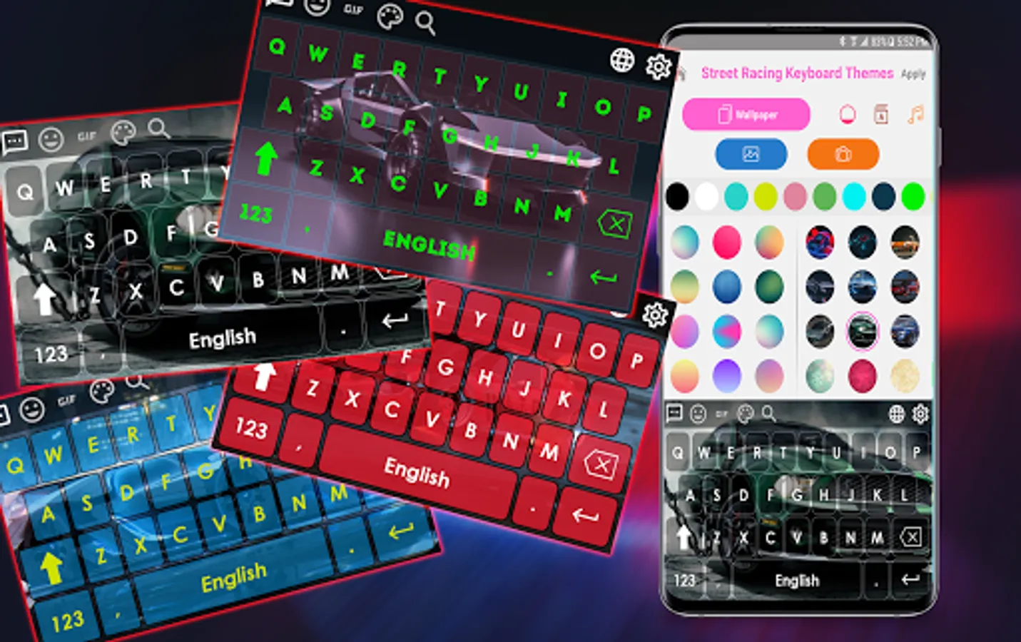 Now it's time to change your boring android keyboard with cool street racing keyboard, Go now to use this free app it allow you to get amazing chatting experience with a lot of emojis and fonts style.